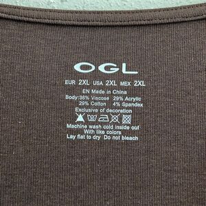 NWT OGL Light Cotton Rib Faux Wrap Light Cotton Midi Dress - Hazelnut Coco Size 2XL