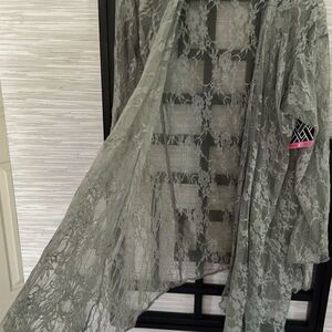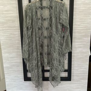 NWT OH MY BOD gray lace long shrug duster jacket sheer great for covering the ar