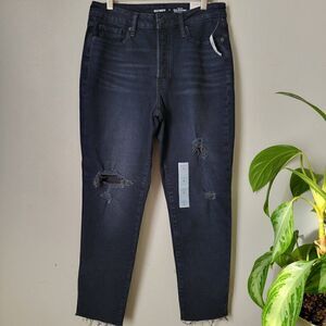 NWT OLD NAVY O.G. STRAIGHT HIGH RISE JEANS BLACK RIPPED SIZE 8