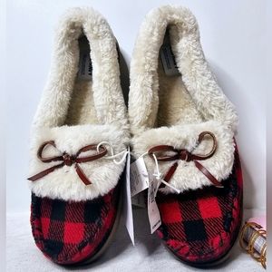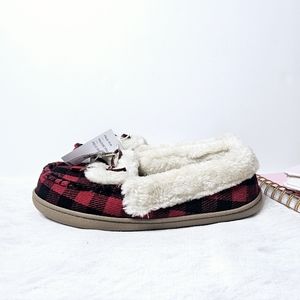 NWT OLD NAVY Sherpa-Lined Gingham Cozy Moccasin Slippers Size 7
