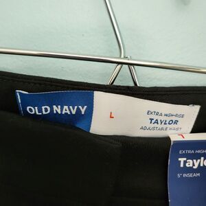 NWT OLD NAVY Taylor Shorts Womens L Black Extra High Rise Pleated Adj Waist