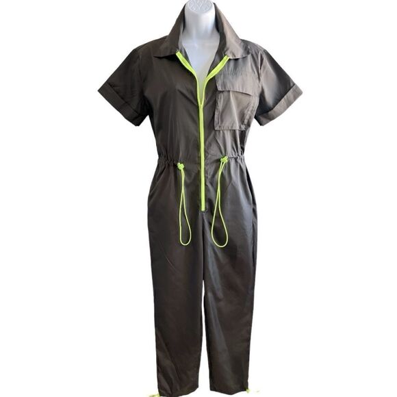 NWT OLIVE GREEN Jumpsuit with Neon Highlights