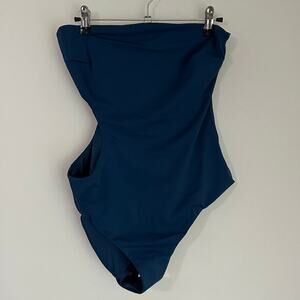 NWT ONIA WOMENS LG LELE TRICOT ONE PIECE STRAPLESS CUTOUT SWIMSUIT BLUE OPAL