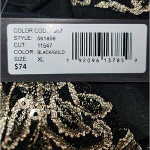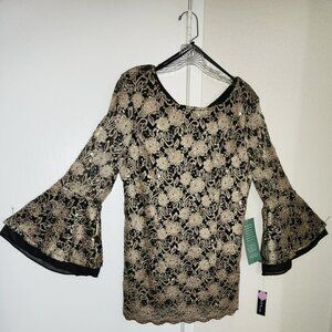 NWT ONYX NITE FORMAL GOLD & BLACK WOMEN'S TOP, FULLY LINED, 3/4 LENGTH SLEEVES, BRAND NEW WITH TAGS.