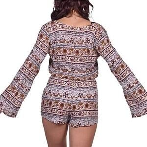 NWT O'Neill Bohemian Aztec Bell Sleeve Romper Size S Beach Festival Indie
