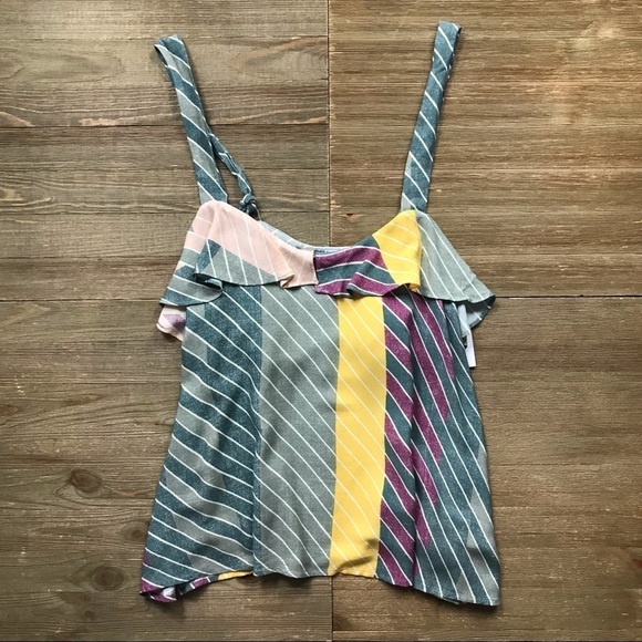 New with tags. O’Neill Cyana Tank Top. Multi colored stripes. Adjustable tie straps. Ruffle detail at neckline. Pit to pit approximately 16”. Size Small