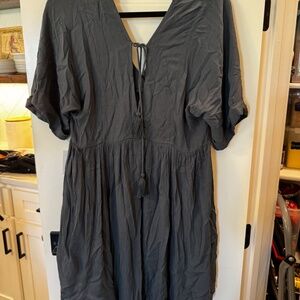 Effortlessly styled woven mini that has a solid color design, dolman sleeve detail and ties at the back.