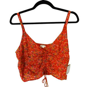NWT O'Neill Kiko Ditsy Floral Ruched Crop Red Viscose Tank XL $45 MSRP