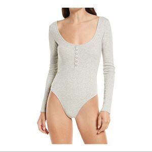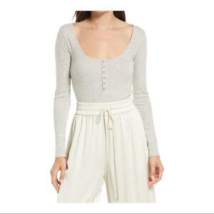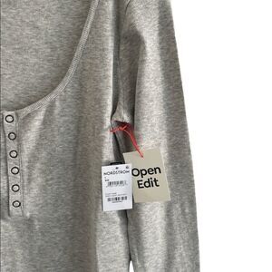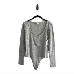NWT Open Edit heather gray ribbed henley bodysuit. Super cute with a pair of wide leg pants or flow maxi skirt!