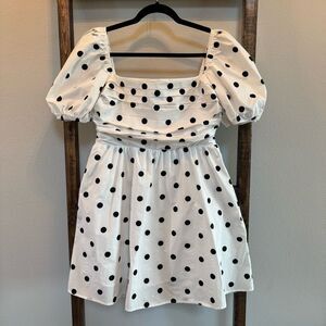 NWT O.P.T. White Black Polka Dot River Pleated Mini Dress