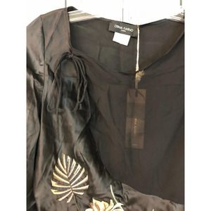 NWT ORNA FARHO MADE IN FRANCE EMBROIDERED SATIN SILK TOP BLOUSE T44