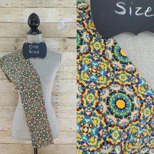 NWT OS One Size LuLaRoe Legging - Blue Green Yellow Red Black on Tan Print