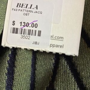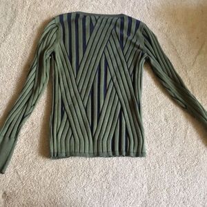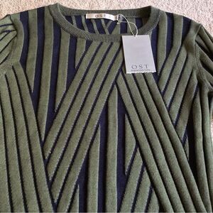 Stylish green and black striped sweater by OST. Features a unique ribbed design.