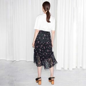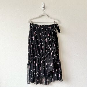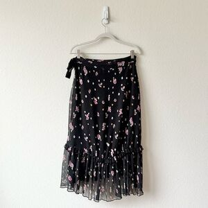 NWT & OTHER STORIES Sheer Floral Ruffle Skirt in Black Size 8