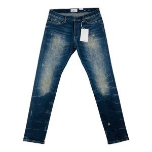 NWT OVADIA Blue Skinny 001 Cotton Elastane 5 Pocket Jeans Mens Size 36X33