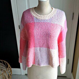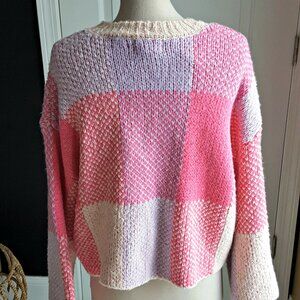 NWT! OVERSIZED PINK PLAID Boho SWEATER SZ L