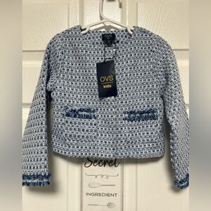 NWT OVS Girls Tweed Blue/White Short jacket Size 3-4 Years