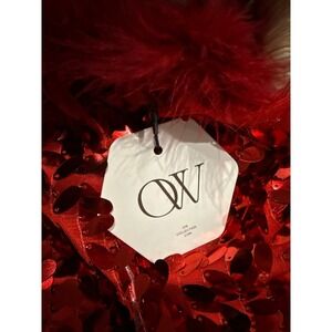NWT OW Collection Luna Sequin Feather Mini Dress in Bordeaux Red Sz XS $228
