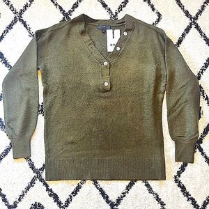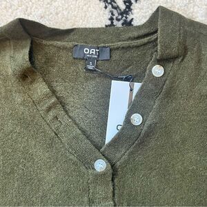 NWT Oat New York Olive Green Long Sleeve Button Neck Henley Sweater Size Small
