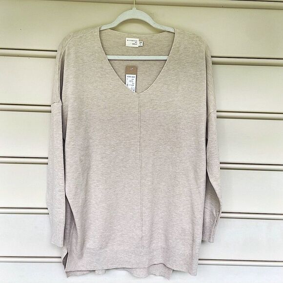 NWT Oatmeal V-Neck Viscose Blend Long Sleeve Sweater Size S/M