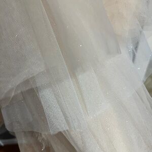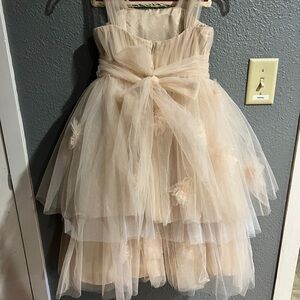 Questions? Leave a comment below! Never worn flower girl dress with added sparkly tulle layer.