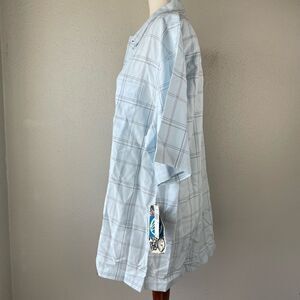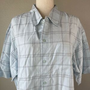 Classic button-down shirt by Ocean current measuring 25 inches across the chest laying flat and 31 inches in length from the shoulder to the hem.