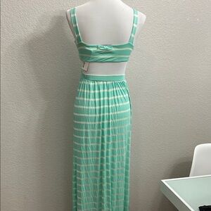 Elegant mint green maxi dress with stylish stripes. Perfect for any occasion.