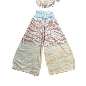 NWT Ocean Drive Tropical Beachy Wide Leg Colorful Pants Crop Top Set Size Small