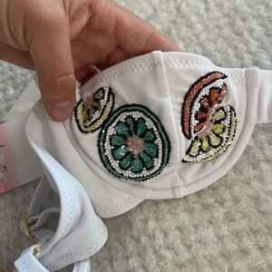 NWT Oceanus Women's White Cara Two-Piece Bikini Set beaded ($315) X-Small