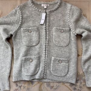 NWT Odette Sweater Lady Jacket in Gray Jeweled Rhinestone Buttons Size XS