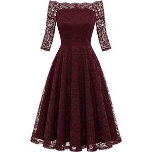 - Style: 3/4 sleeve, off shoulder, boat neck, floral lace, A line, back zipper closure