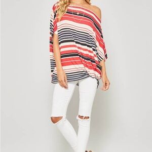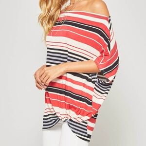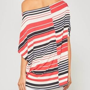 NWT Off Shoulder Striped Dolman Top | Red Black Cream | Casual Chic