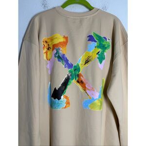 NWT Off-White Men’s Tan Sweatshirt Cotton Logo Size L