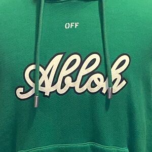 NWT Off-White Oversize Football Logo Graphic Hoodie in College Green (sz M)