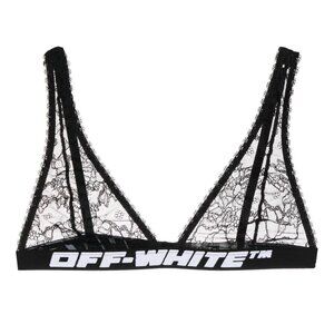 NWT Off-White logo-tape lace triangle bra - L - OWUA037C99FAB0011000