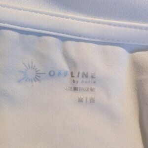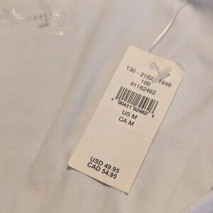Brand new, never worn, new with tags. Size medium. White cropped polo shirt with blue stripe and Peter Pan collar. 26 inches wide and approx. 12.5 inches long, it's also very stretchy. Never worn. Has some stains on the collar that should wash out.