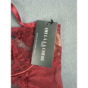 NWT Oh La La Cheri Floral Embroidery and Lattice Detailing open cup teddy m