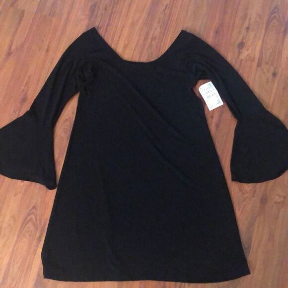 NWT Oh My Bod Little black dress travel dress best cut a line with bell sleeve s