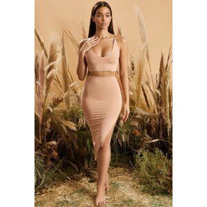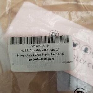 NWT Oh POLLY CROSS MY MIND Plunge Neck Crop Top Color Tan Size US 10