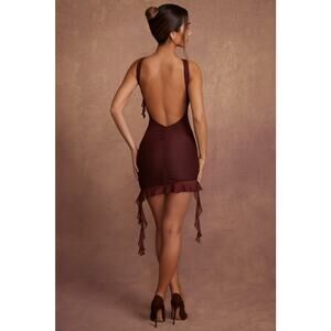 NWT Oh Polly Backless Ruffle Detailing Mini Dress in Brown Women’s Size 4