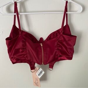 Burgundy Oh Polly Satin Lace Up Corset Crop Top w. Zipper Closure Size Small NWT
