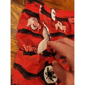 Get ready for game day or a day on the water with these officially licensed Ohio State Buckeyes swim shorts. Made by Columbia, these shorts are perfect for any Buckeyes fan. The red shorts feature a mesh-lined interior and are made of quick-drying fabric, making them perfect for the beach or the pool. The shorts are size XL and have a 6" inseam, making them perfect for men.