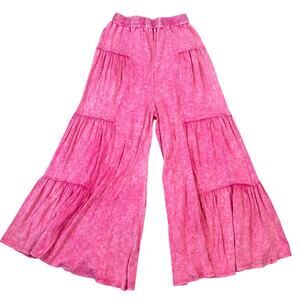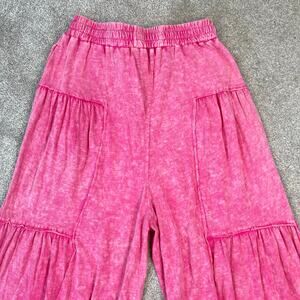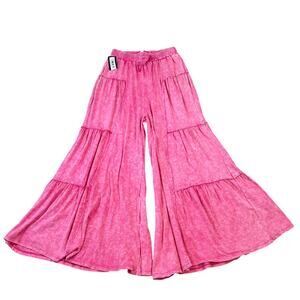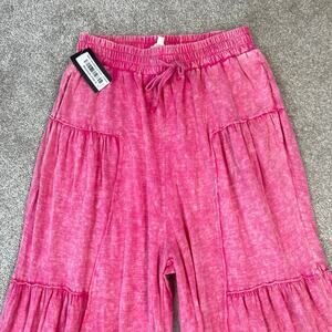 NWT Oil and Hali Pink Mineral Wash Drawstring Elastic Waistband Wide Leg Pants S