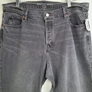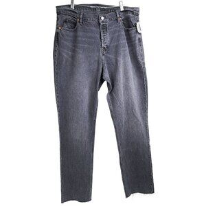 NWT Old Navy 14 Tall High Waisted Button Fly Slouchy Straight Jeans Grey/Black