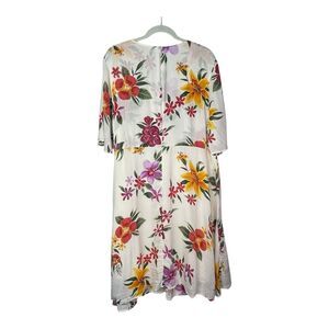 NWT Old Navy 2X Plus White Floral Faux Wrap Flutter Sleeve Ruffle Dress