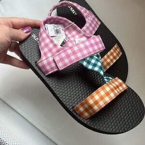 Brand new never worn gingham strap sandal. Has Velcro for easy on and off! Fun bright colors, squishy foam bottom. Size 4 in youth, big kid.