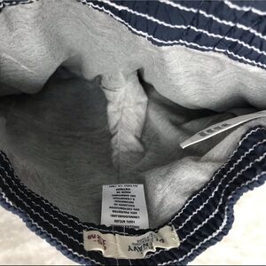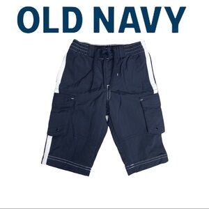 Navy blue with white stripes Dow the sides, also side pockets on each leg