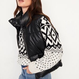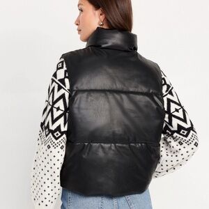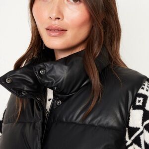 NWT! Old Navy Black Faux-Leather Puffer Vest - XS petite