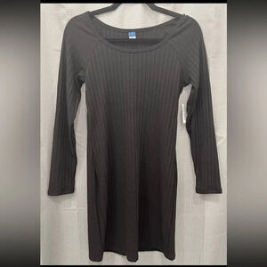 NWT Old Navy Black Fit Flare Rib Knit Long Sleeve Mini Dress Womens Sz Medium