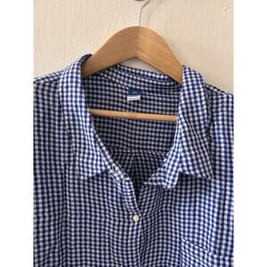 NWT Old Navy Blue Gingham Button Up Short Sleeve Top | XXL